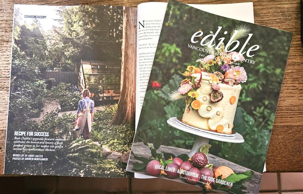 – Recipe for Success. Rosie Daykin’s vegetable forward cookbook celebrates the beauty and bounty of fresh produce growing in her modest side garden next to her rambunctious chickens. Overview of cookbook (with recipes) The Side Gardener.